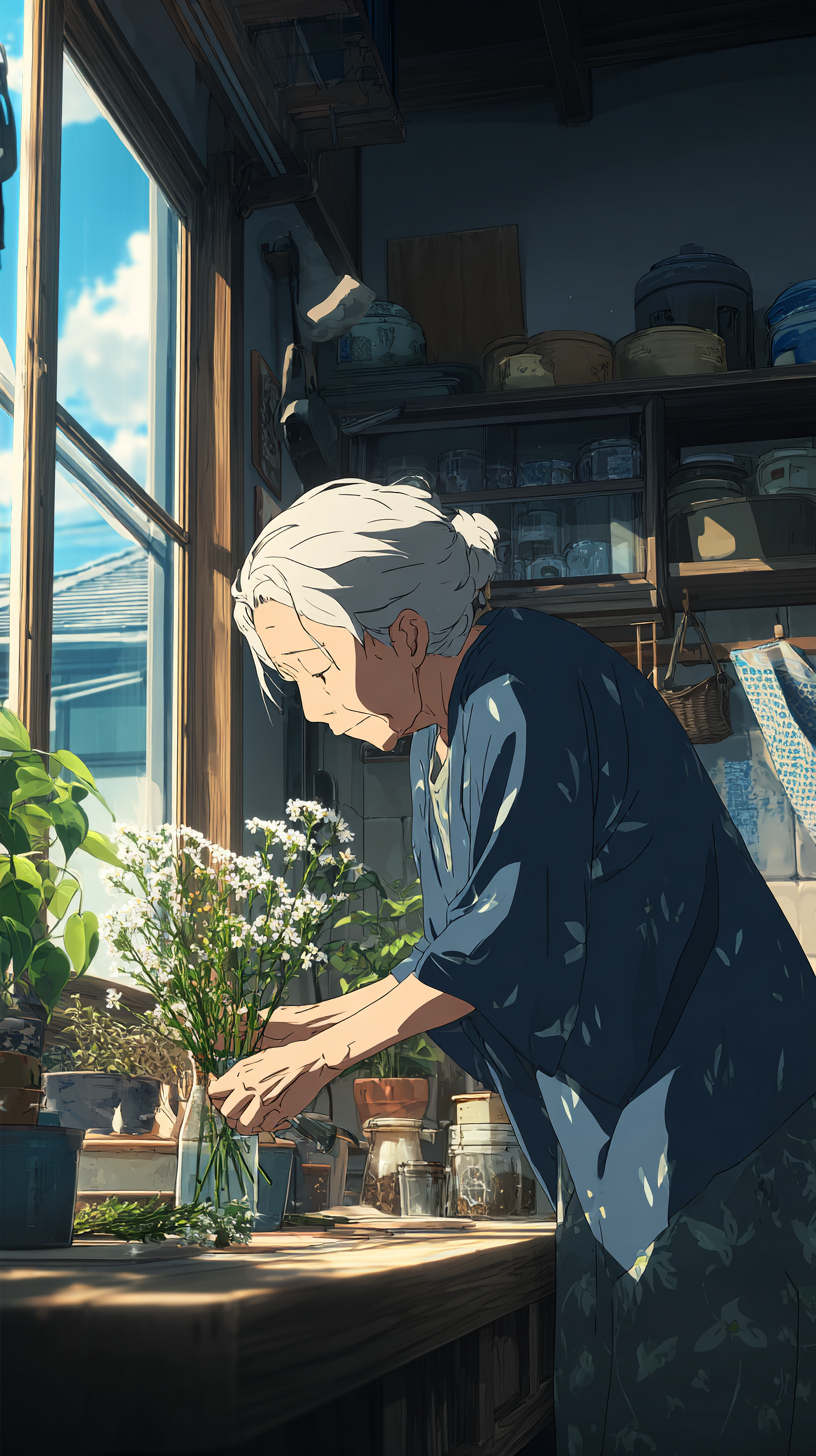 혼잣말을 중얼거리고 고개를 돌리자, 낡은 경대가 눈에 들어왔다. 거울 속에는 낯선 노파가 앉아 있었다. 깊게 패인 주름, 앙상한 어깨 위에 걸쳐진 숄. 나는 떨리는 손을 들어 거울 속 내 뺨을 어루만졌다.