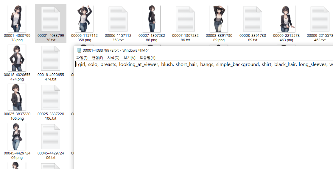 요렇게 그림마다 txt로 자동으로 프롬프트가 붙을걸 볼 수 있다.